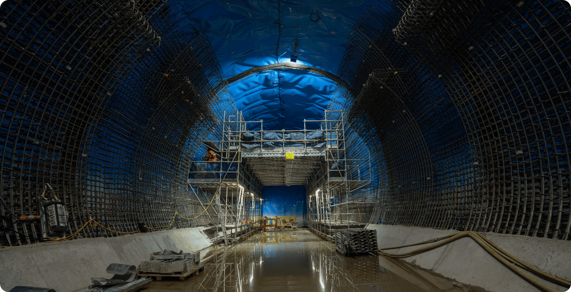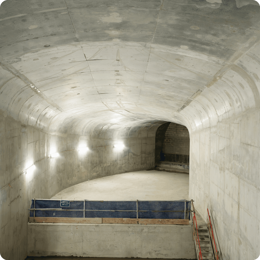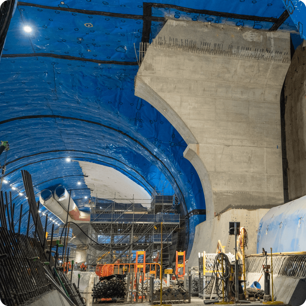 Kenny Constructions was engaged to deliver the permanent lining works for the new Hunter Street Station, including construction of a new pedestrian access tunnel between Hunter Street and Martin Place (Blight Street Adit), along with associated shaft enabling works.The permanent lining works comprised large invert pours, sidewall and crown pours, as well as nozzle walls and headwalls.The scope included the placement of approximately 80,000 m³ of concrete and the installation of over 10,000 tonnes of reinforcement.