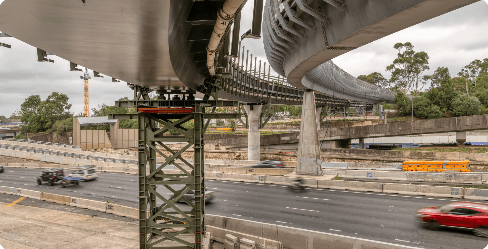 The Warringah Freeway Upgrade transforms 4 km of motorway to improve traffic flow, safety, and active transport, integrating with future links like the Western Harbour Tunnel. Works include bridge replacements, new and modified ramps, underpasses, and shared user crossings, delivered within a live traffic corridor using staged construction and temporary works to maintain access to the Sydney Harbour Bridge and nearby interchanges.